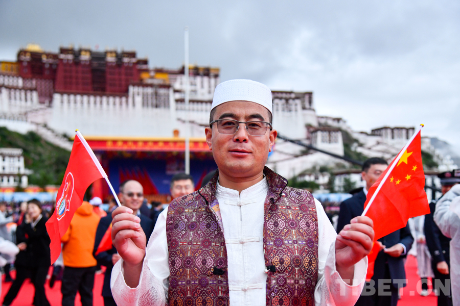“今年是我來(lái)到西藏的第二十個(gè)年頭,從剛開始的一無(wú)所有,到現(xiàn)在的小康生活,這一切都是西藏這一塊寶地帶給我們的,都是當(dāng)?shù)赝麑?duì)我們信任的結(jié)果。作為西藏發(fā)展的參與者和見證者,有幸親眼見證這片土地二十年的發(fā)展與變化,今天能夠在布達(dá)拉宮廣場(chǎng)參與這一盛會(huì),我心潮澎湃,倍感光榮?!眮?lái)自甘肅的馬志剛2005年起來(lái)到拉薩經(jīng)商。
