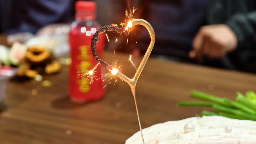 圖為在正在燃燒的愛(ài)心蠟燭點(diǎn)亮七夕活動(dòng)