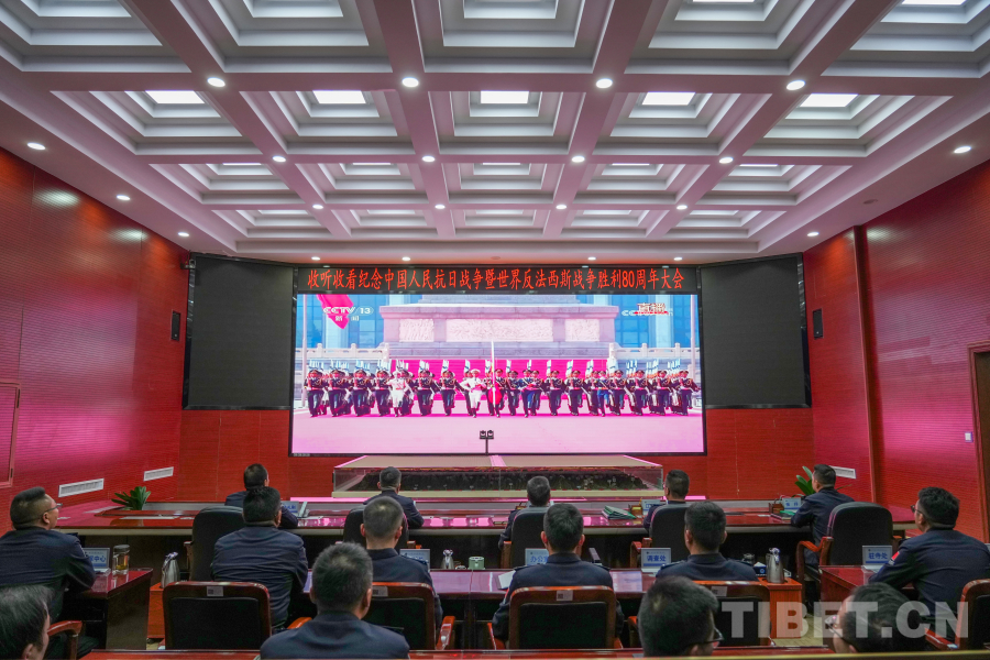 圖為日喀則邊境管理支隊(duì)機(jī)關(guān)組織民警收聽收看紀(jì)念中國人民抗日戰(zhàn)爭(zhēng)暨世界反法西斯戰(zhàn)爭(zhēng)勝利80周年大會(huì) 攝影:葉軼