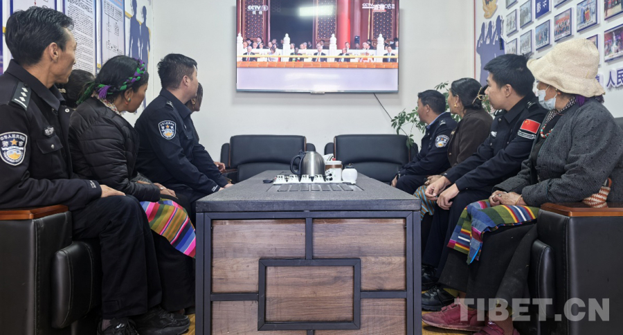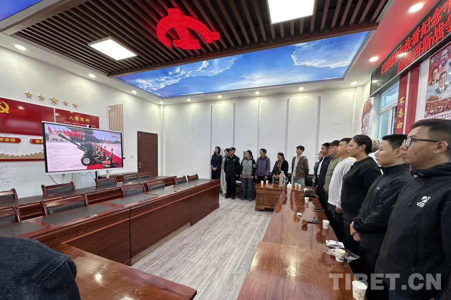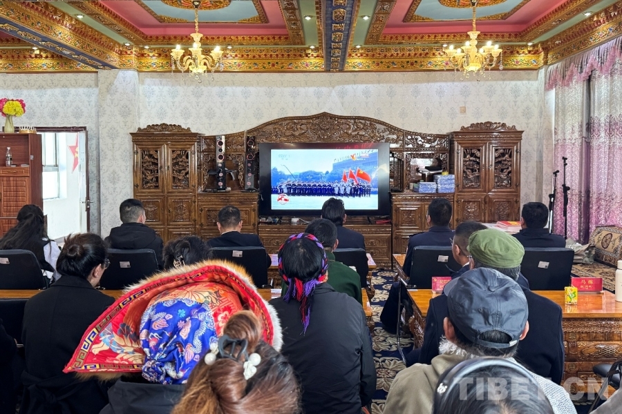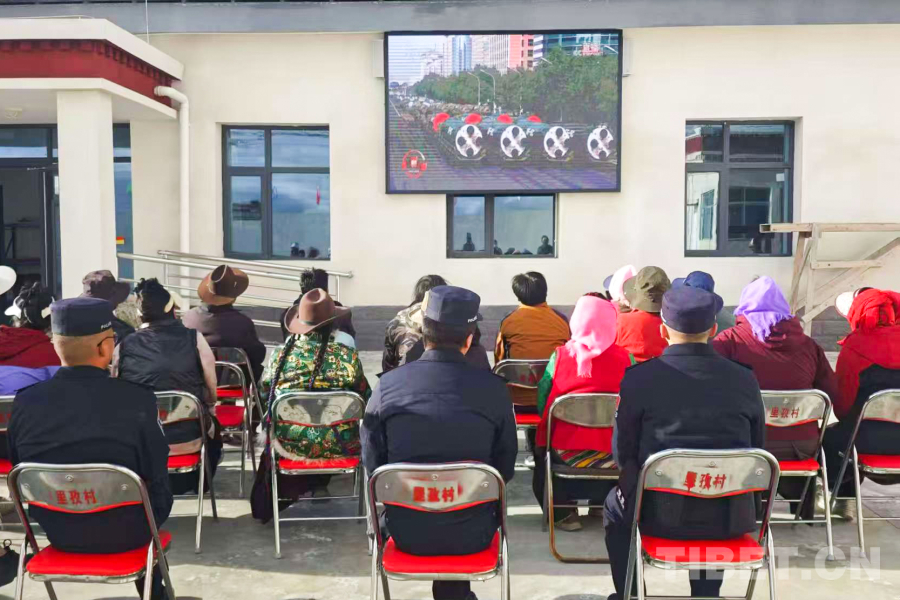 圖為日喀則邊境管理支隊(duì)仲巴邊境管理大隊(duì)帕羊邊境派出所與駐地人民政府聯(lián)合觀看紀(jì)念中國人民抗日戰(zhàn)爭(zhēng)暨世界反法西斯戰(zhàn)爭(zhēng)勝利80周年大會(huì) 攝影:次仁旺堆