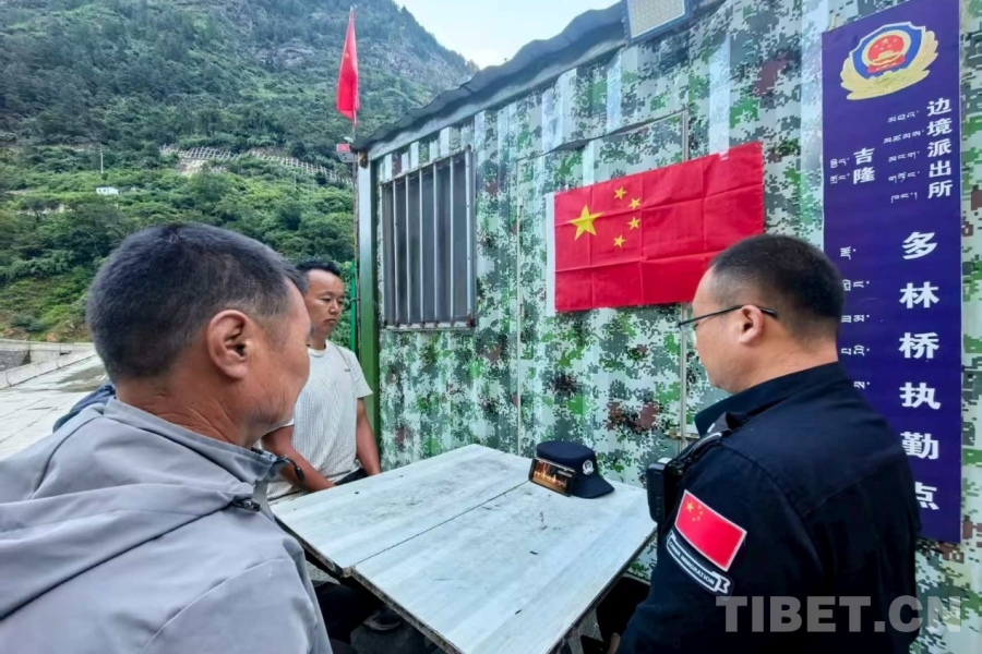 圖為日喀則邊境管理支隊(duì)吉隆邊境管理大隊(duì)吉隆邊境派出所多林橋執(zhí)勤點(diǎn)組織民警、護(hù)邊員和輔警觀看紀(jì)念中國人民抗日戰(zhàn)爭(zhēng)暨世界反法西斯戰(zhàn)爭(zhēng)勝利80周年大會(huì) 攝影:季韶龍