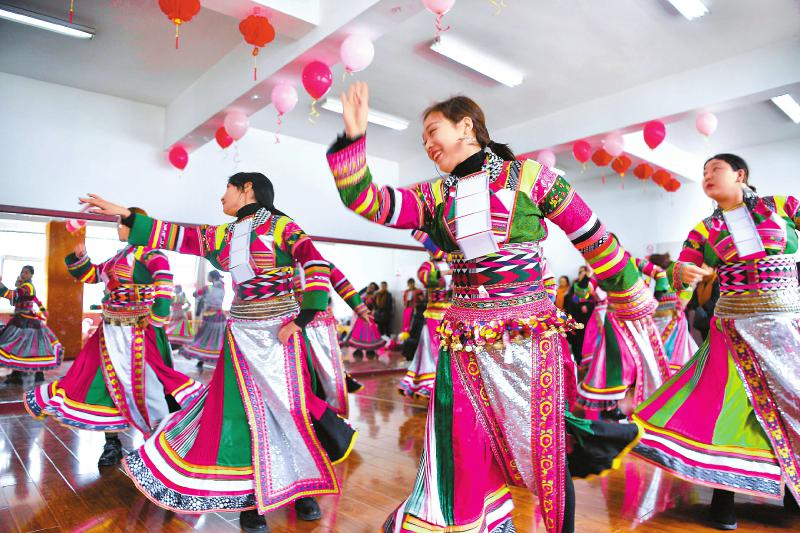 帶動(dòng)的不只是民宿……說(shuō)干就干。從2016年開(kāi)始,村里有意識(shí)地把大家組織起來(lái),經(jīng)常在村里“跳曹蓋”,隨后,在縣委宣傳部等部門的支持下,村里組建起一支20人的白馬文化服務(wù)隊(duì),經(jīng)常在村里表演。