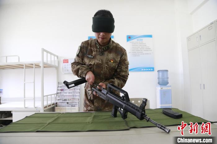 資料圖為馮志威演示無光條件下自動步槍拆卸。馬銘言 攝