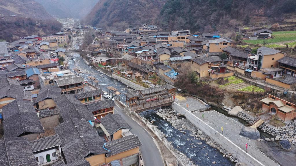 這是1月12日拍攝的隴南市文縣鐵樓藏族鄉(xiāng)草河壩村(無人機(jī)照片)。新華社記者 郎兵兵 攝