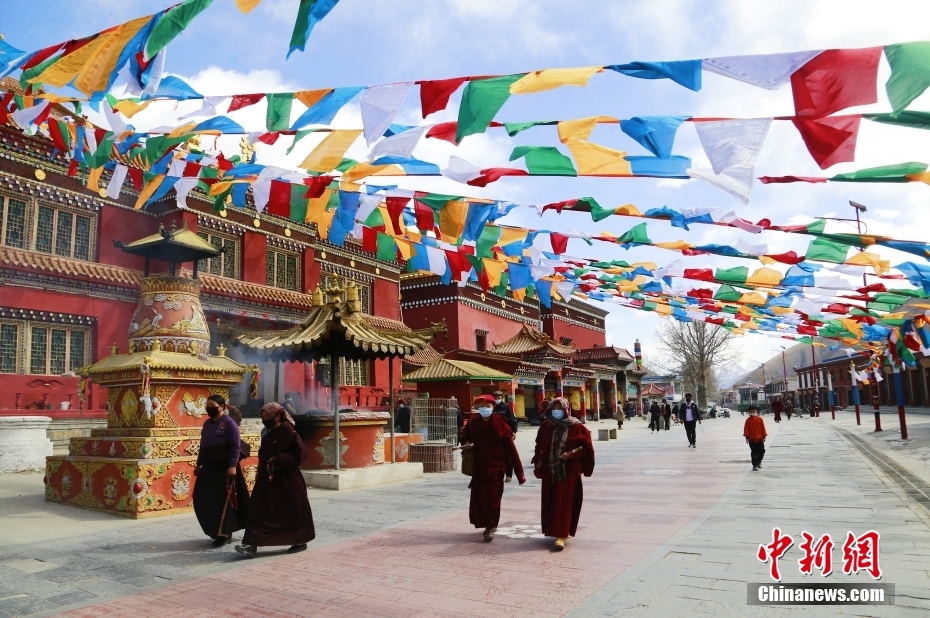3日的青海玉樹藏族自治州玉樹市格薩爾廣場(chǎng)內(nèi),一片熱鬧祥和,玉樹民眾身著民族服飾載歌載舞迎接2022藏歷新年?!傲_薩扎西德勒!”來(lái)往的玉樹民眾彼此送出新年的祝福。[詳細(xì)] -