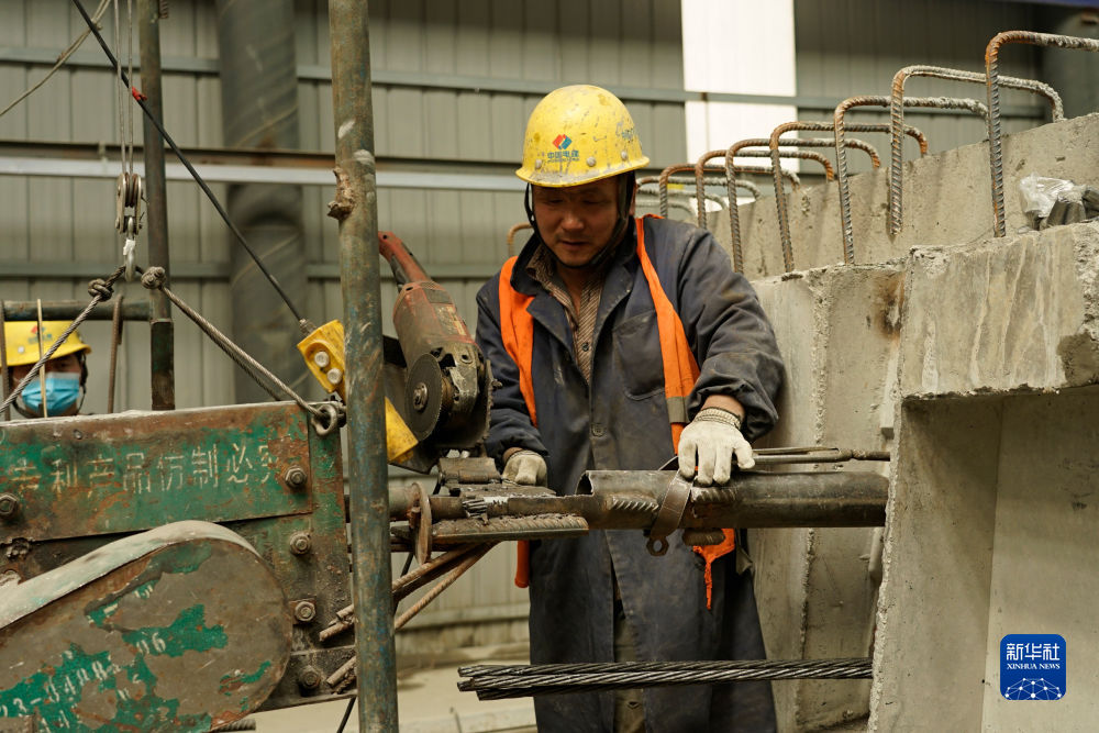 4月28日,一名工人在加西公路項(xiàng)目的預(yù)制梁場(chǎng)加工鋼筋。新華社記者 陳杰 攝
