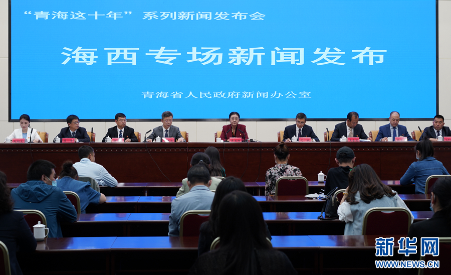 圖為“青海這十年”海西州專場(chǎng)新聞發(fā)布會(huì)現(xiàn)場(chǎng)。新華網(wǎng) 卡婭梅朵 攝