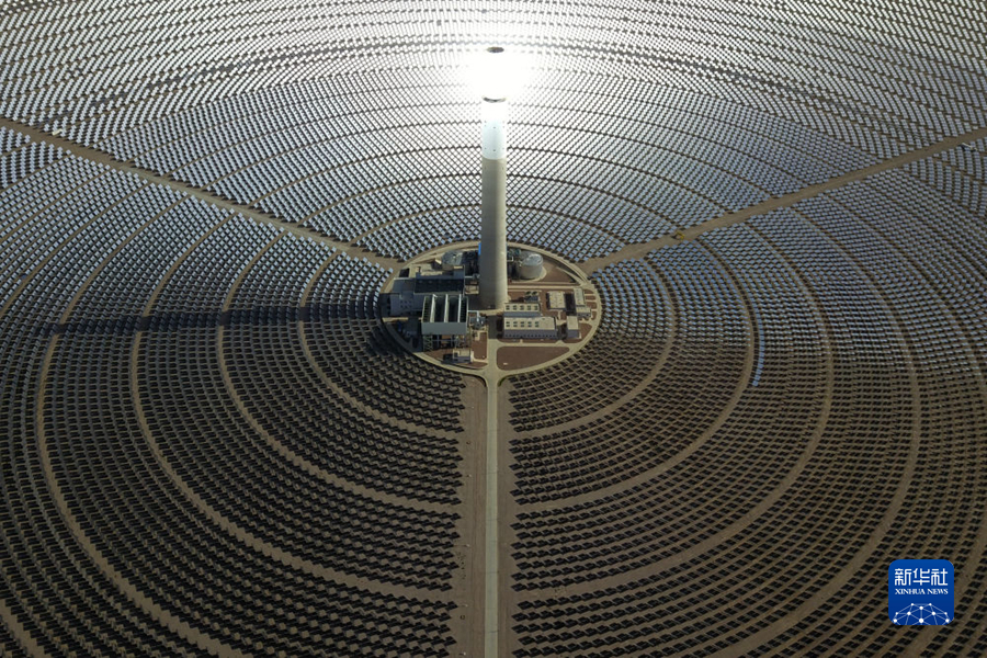 這是6月8日在海西蒙古族藏族自治州德令哈市光伏(光熱)產(chǎn)業(yè)園拍攝的青海中控德令哈50兆瓦光熱電站(無(wú)人機(jī)照片)。新華社記者 范培珅 攝