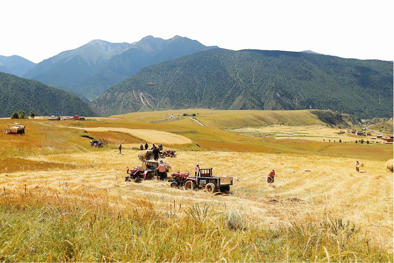 迎來豐收季,白玉縣機械化收割青稞。 本版圖片均由司法廳提供