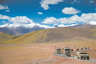西寧聯(lián)勤保障中心汽車運輸某團(tuán)一營一連在雪域高原執(zhí)行運輸保障任務(wù)。孟釗 攝