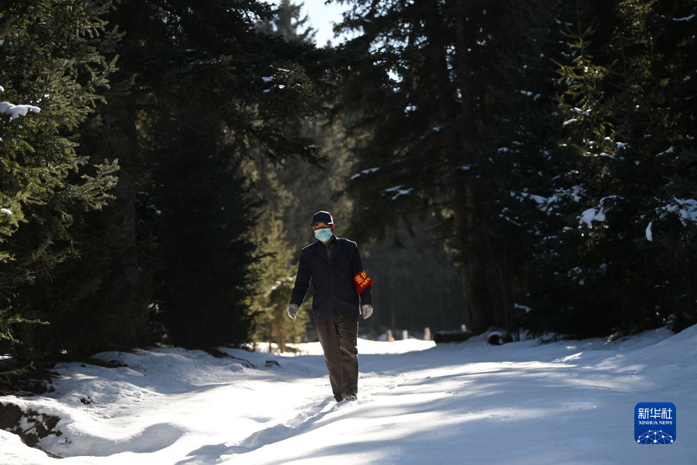 2022年11月23日,護(hù)林員在西寧市大通回族土族自治縣東峽林場內(nèi)巡護(hù)。新華社記者 張龍 攝