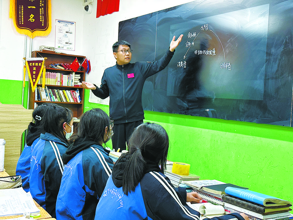 來自對外經(jīng)濟貿(mào)易大學附屬中學的孫海濤是區(qū)級骨干教師。來到玉樹四中后,擔任高三生物教學。說話風趣幽默、課堂氣氛活躍、擅于舉例子打比方是學生對他的普遍評價。