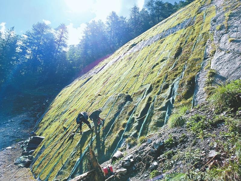 目前,九寨溝裸巖邊坡苔蘚成功建植率達到80%以上。
