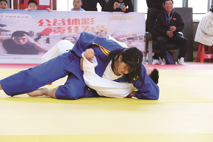 摔、抱、勾、壓……競賽場上,身著白色和藍(lán)色柔道服的各地運(yùn)動(dòng)員們行賽前禮儀后便展開激烈對抗;一道道藍(lán)白身影彼此纏斗膠著,都在尋找一招克敵致勝的良機(jī)。賽場下,隊(duì)友們鼓勁聲澎湃,教練們指導(dǎo)聲高亢,觀眾們激動(dòng)不已。場上場下各種噴張的聲音匯成一組激蕩人心的競技交響曲,好不青春熱血。