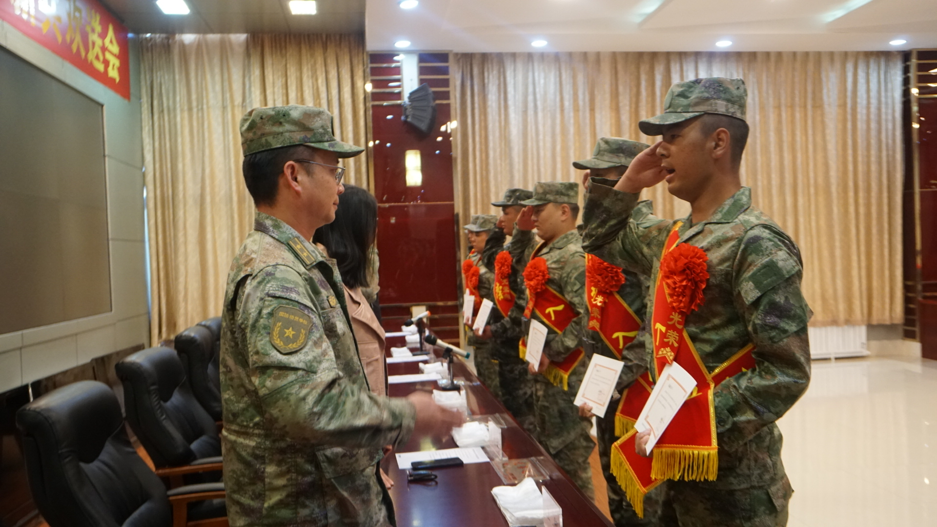 新兵胡杰說(shuō),今天有幸加入綠色軍營(yíng)行列,感到非常幸運(yùn)和自豪。到部隊(duì)后,一定牢記家鄉(xiāng)人民的囑托,以部隊(duì)為家,刻苦訓(xùn)練,聽(tīng)從指揮,當(dāng)一名優(yōu)秀士兵,以優(yōu)異成績(jī)回報(bào)家鄉(xiāng)。