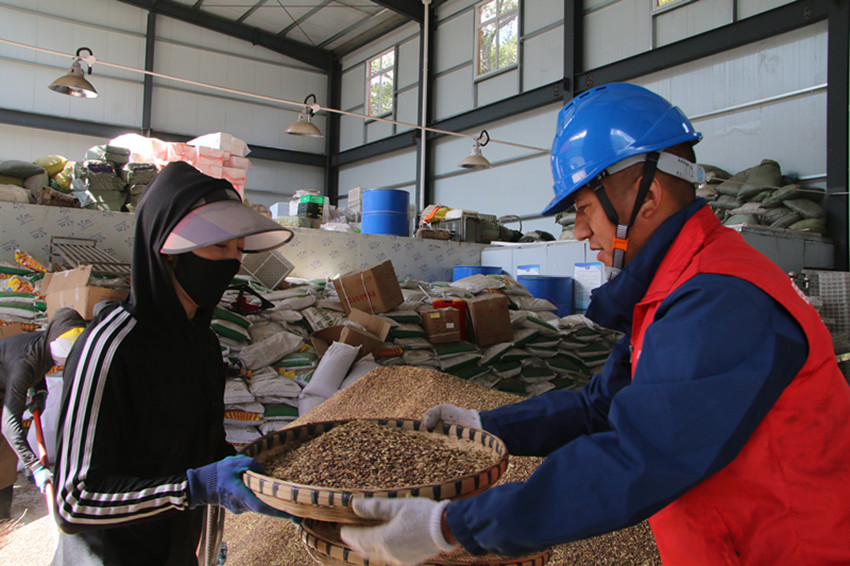 基地生產(chǎn)車間機(jī)器轟鳴,黃褐色的青稞屯滿糧倉,一派繁忙景象?!皫煾?,在烘干青稞時,你要注意與設(shè)備保持安全距離,避免誤碰造成危險?!笨刀ü炯赘鶋喂╇娝L扎西甲錯不時提醒使用青稞烘干機(jī)的師傅們要注意安全,并帶著員工為黑青稞基地排查安全隱患,講解線上繳費(fèi)等各項用電知識,提供便捷的電力服務(wù)。