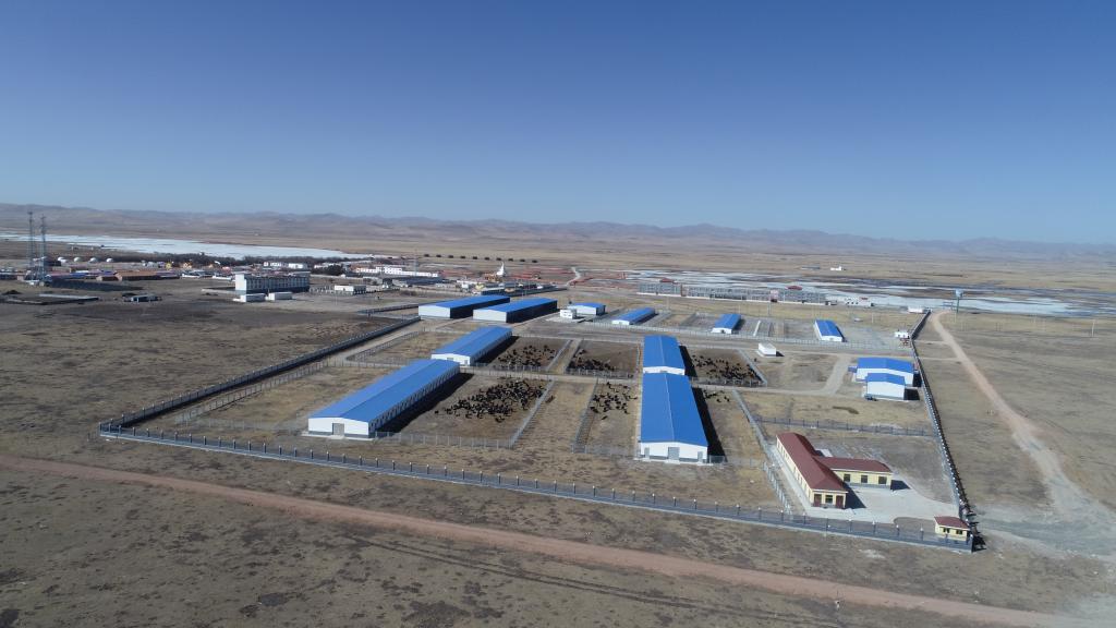 此為甘肅省甘南藏族自治州瑪曲縣馬場畜牧產(chǎn)業(yè)養(yǎng)殖基地。(無人機照片)(受訪者供圖)