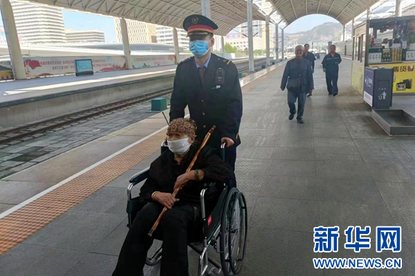 在西寧火車站站臺(tái),客運(yùn)二班值班員李城爭分奪秒地幫助乘客檢票、搬運(yùn)行李,引導(dǎo)旅客完成門對門點(diǎn)對點(diǎn)的換車。下午7點(diǎn)26分,從上海來的乘客在20分鐘內(nèi)完成了火車的同站換乘,乘坐Z165趟列車?yán)^續(xù)前往西藏拉薩。李城也在站臺(tái)上目送列車遠(yuǎn)去,等待下一輛需要“擺渡”的火車。
