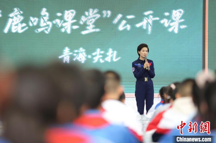 當(dāng)日,身穿天藍(lán)色航天員訓(xùn)練服的劉洋,神采奕奕。接受高原藏鄉(xiāng)民眾潔白哈達(dá)后,她在尖扎縣第二民族中學(xué),參加“鹿鳴課堂”公開(kāi)課,講述夢(mèng)想的故事,并帶此間師生“遨游”太空。
