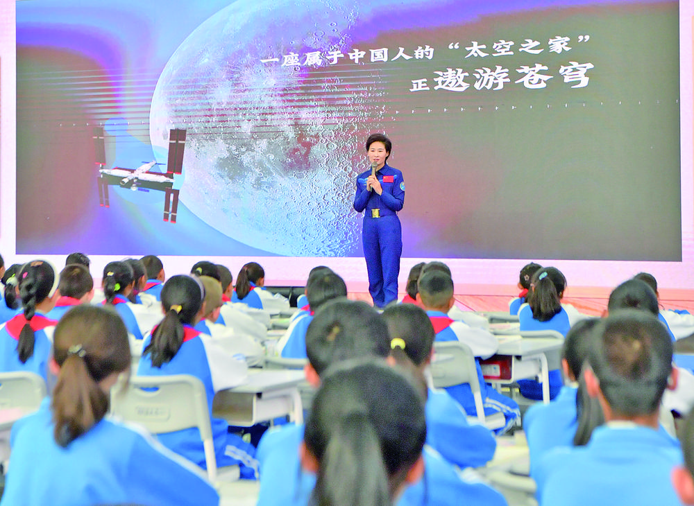 中國首位女航天員劉洋正在為同學(xué)們授課。王偉才 李娜 攝