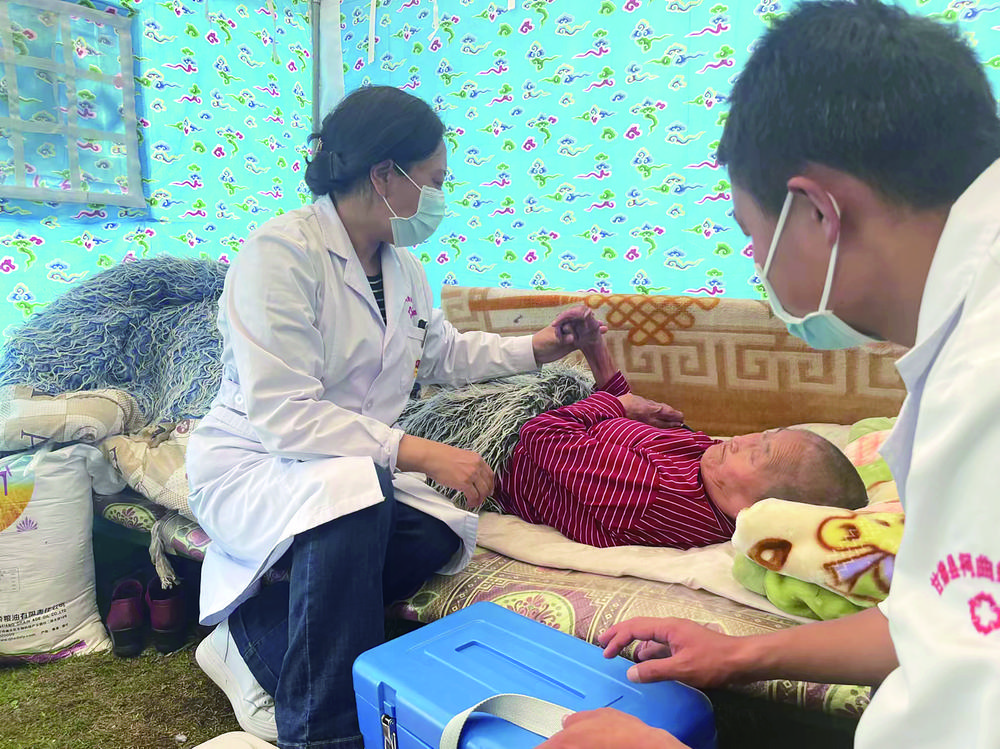 “哪里需要去哪兒,病人的事就是最大的事。”這是尼瑪拉毛經常重復的一句話。養(yǎng)老院的孤寡老人是她每次出診時重點巡查的人群,而老人們更把她看作是自己的女兒,生病了就托人帶話給她,她也總會及時去看望老人們。在她的從醫(yī)經歷中,遇到家庭困難的患者,差的藥費她總是悄悄地墊上。好多居住在牧區(qū)的老人,由于年齡高、腿腳不方便、長期臥病在床、交通不方便等原因,不能來縣城看病,她了解到這些患者的信息后,帶著他們需要的藥品和生活用品,親自上門服務,為他們解除病痛的折磨,給他們的生活增添了很多溫暖。一位78歲的老奶奶多年受老寒腿困擾,在接受治療后癥狀減輕,她激動地說:“我年輕的時候長得漂亮著呢,可就是不好意思在大家面前跳舞。后來不害羞了,腿疼得又跳不了舞?,F(xiàn)在,我的腿不疼了,我要跳舞給你們看看?!睔g樂的鍋莊音樂響起來了,尼瑪拉毛和老奶奶隨著音樂起舞,她們的眼里,都溢滿了淚花,是激動,也是彼此給予的溫暖……