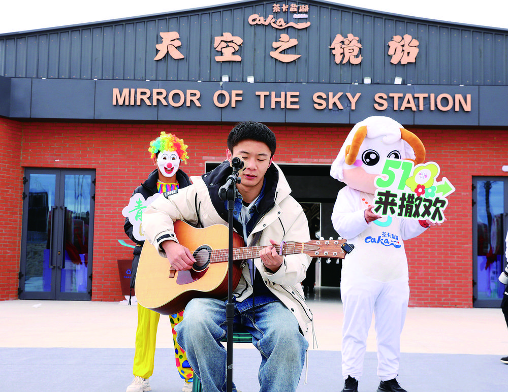 以“天空之鏡”為幕布,用高山草原組混響,一支話筒的矗立就是一個(gè)舞臺(tái),成就無(wú)數(shù)游客的歌唱夢(mèng)想。為不斷豐富游客體驗(yàn),茶卡鹽湖景區(qū)全新設(shè)置“全民K歌”區(qū)域,讓游客沉浸式打卡鹽湖風(fēng)光。