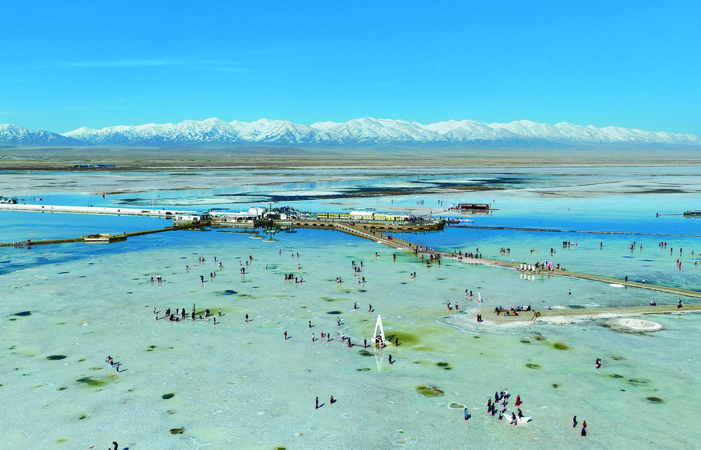 游客沉浸式打卡茶卡鹽湖。李慶玲 攝