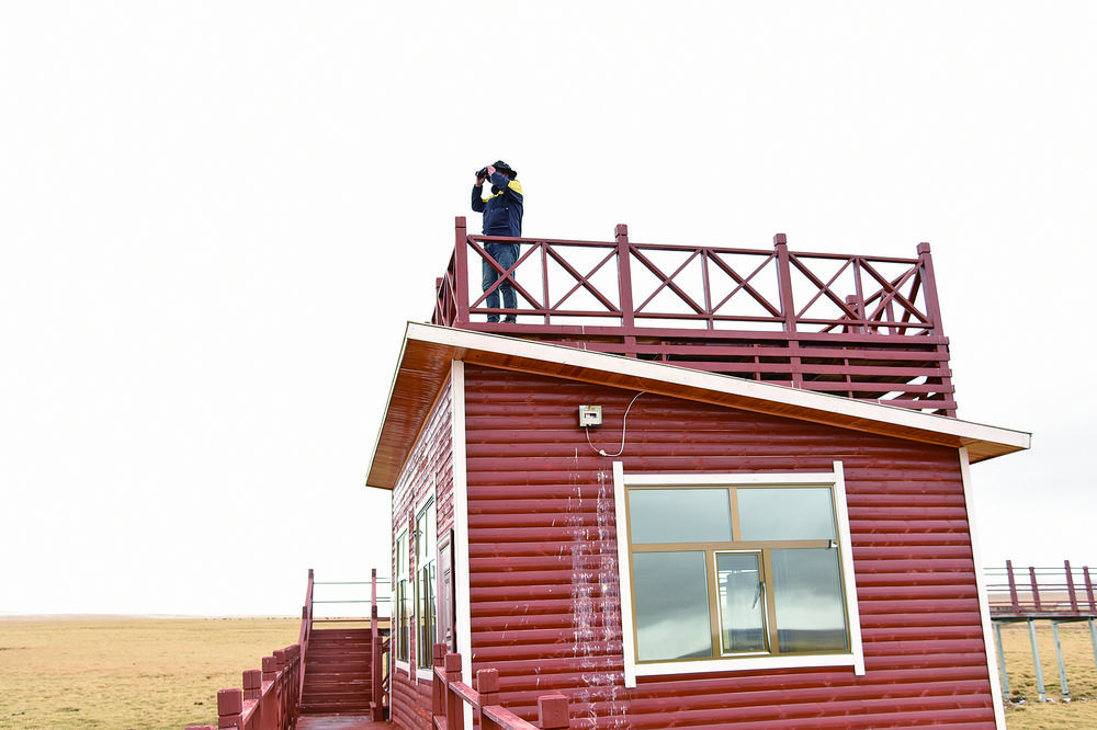 5月17日一早,家住青海省玉樹藏族自治州曲麻萊縣巴干鄉(xiāng)麻秀村1社的生態(tài)管護員扎江,如往常一樣來到德曲源國家濕地進行巡護。細心的扎江站在觀測點上通過望遠鏡看到,一只雌性黑頸鶴正在濕地中央的草甸上產(chǎn)蛋,另一只雄性黑頸鶴默默守護在一旁。