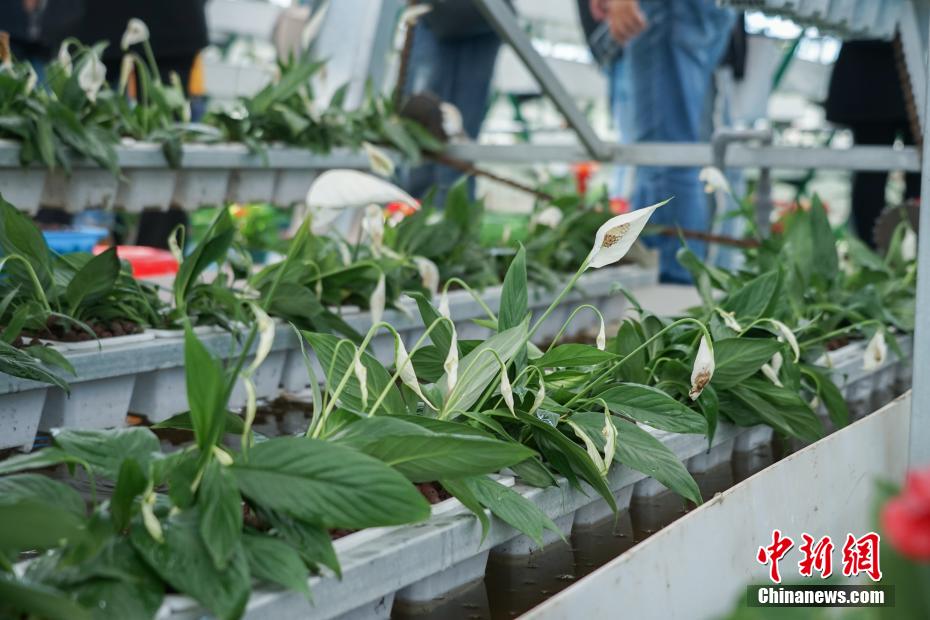 圖為該基地?zé)o土栽培的花卉。馬銘言 攝
