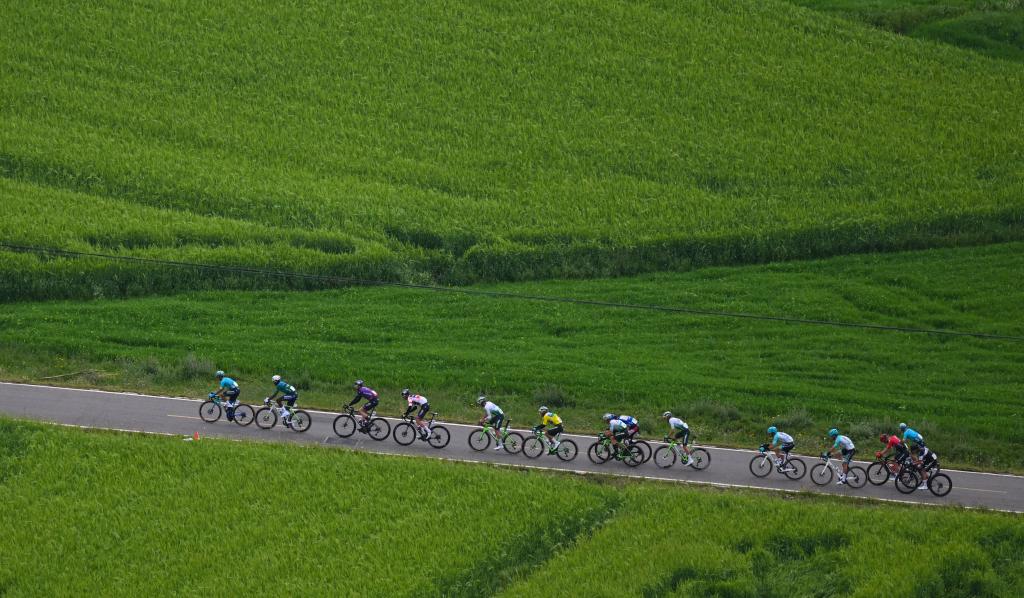 7月11日,比利時塔特雷托-艾索雷斯車隊車手阿恩·桑蒂在比賽中騎行。新華社 潘彬彬 攝