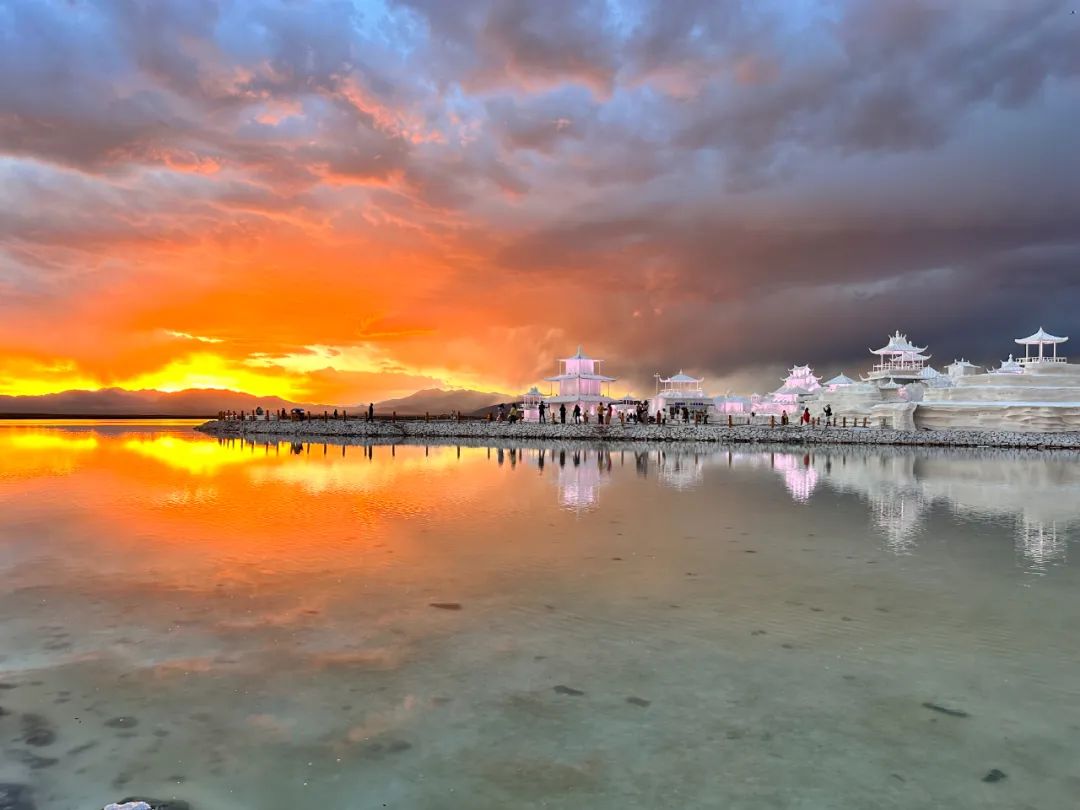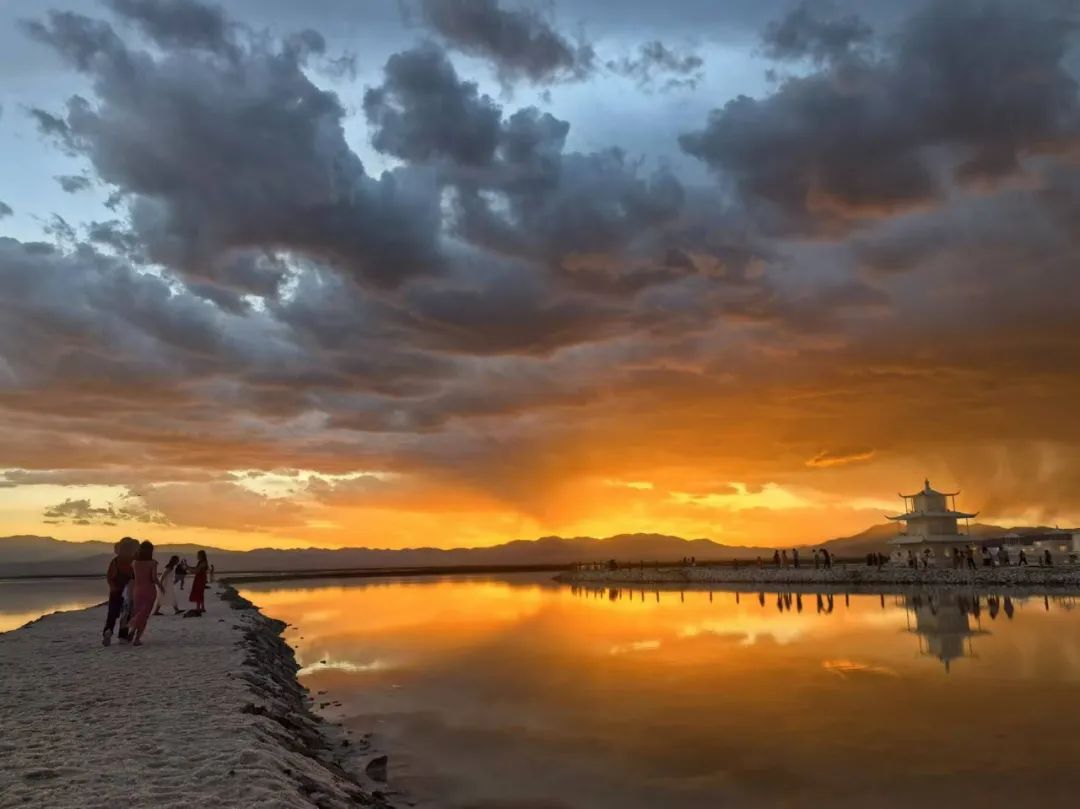 茶卡鹽湖雨后迎來世紀(jì)晚霞