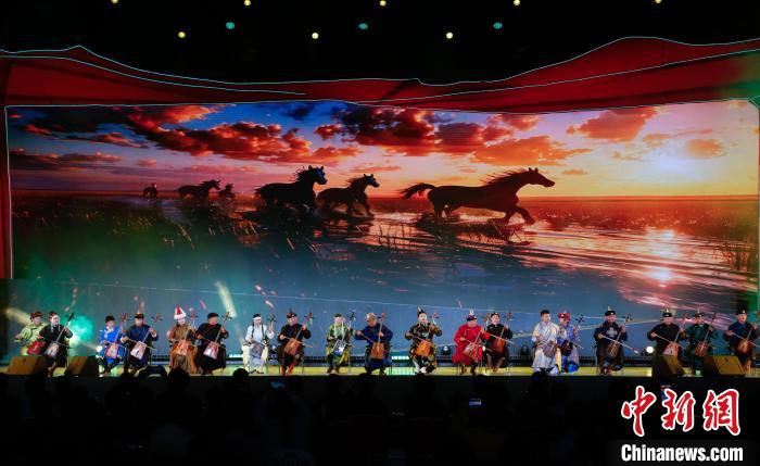 圖為晚會現(xiàn)場進(jìn)行馬頭琴表演。中新社記者 馬銘言 攝