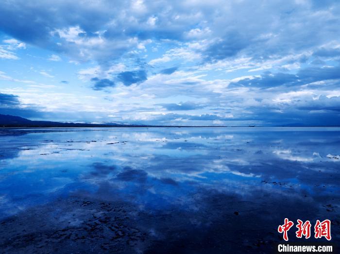 圖為茶卡鹽湖水映天空。王生榮 攝