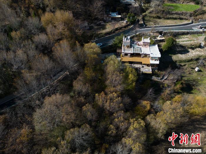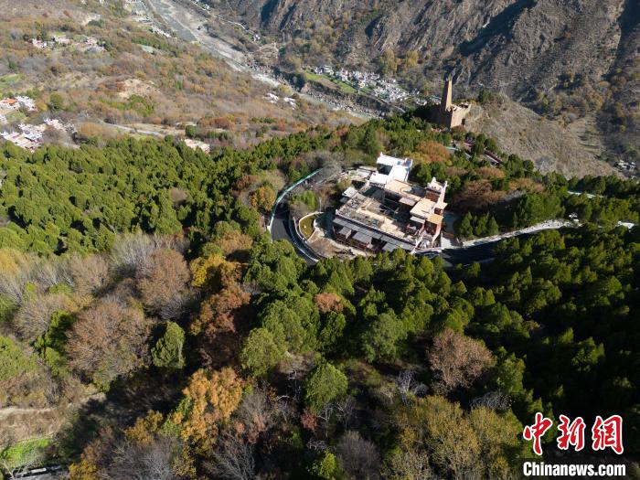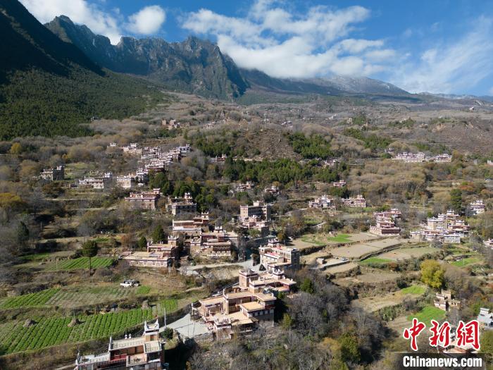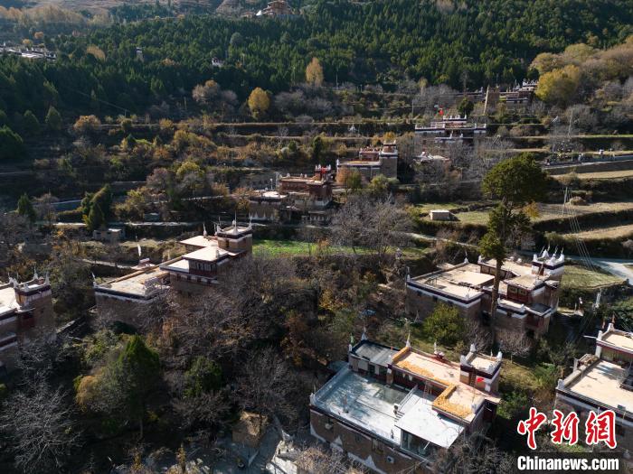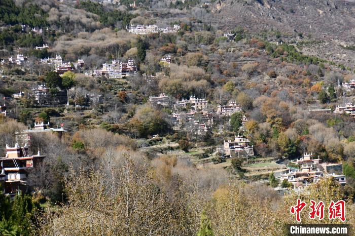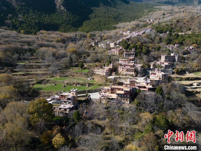 12月3日,四川省甘孜州丹巴縣甲居藏寨吸引游人。初冬時(shí)節(jié),甲居藏寨一幢幢藏式樓房在藍(lán)天白云映襯下,呈現(xiàn)出一幅色彩斑斕的景象。(無人機(jī)照片)中新社記者 張浪 攝