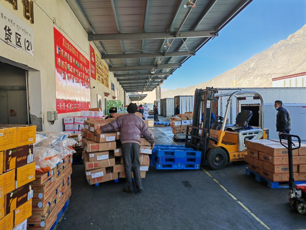 記者了解到,物流港每天配送到西藏各地的物資超過(guò)400噸。“青藏線是西藏的生命線,我們最遠(yuǎn)的貨源是在5000多公里外的黑龍江齊齊哈爾?!睏铒@慶說(shuō)。