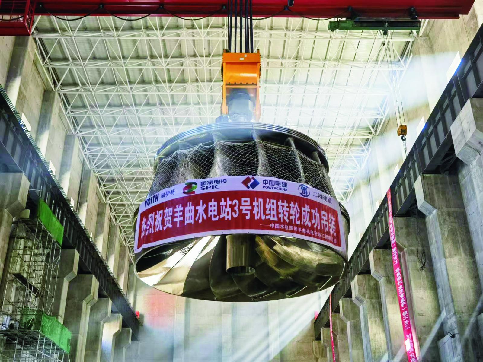 羊曲水電站3號(hào)機(jī)組轉(zhuǎn)輪成功吊裝。
