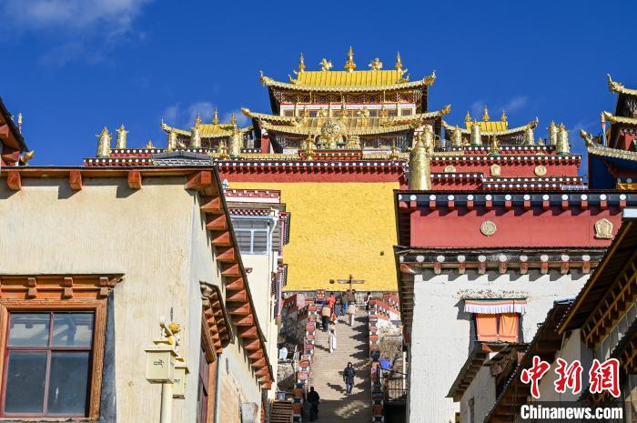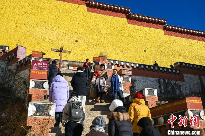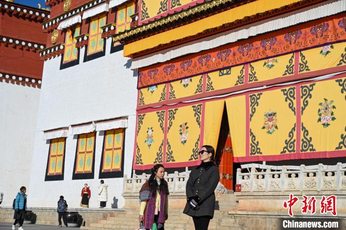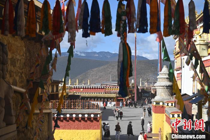圖為游客在噶丹松贊林寺內(nèi)觀光。中新社記者 李嘉嫻 攝