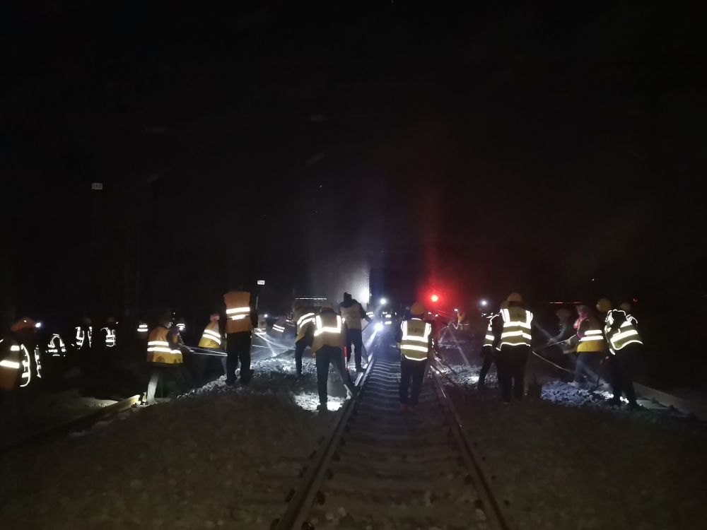 臨近次日3時(shí),現(xiàn)場(chǎng)防護(hù)員與駐站防護(hù)員完成了最后一次通話確認(rèn):“蘭青線老鴉城站卸石砟施工完畢,人員機(jī)具撤離現(xiàn)場(chǎng),檢查確認(rèn)卸砟地段無(wú)侵線、無(wú)遺留,關(guān)閉錄音筆、語(yǔ)音提示器。”此次卸砟施工圓滿落下帷幕。