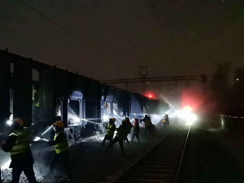 時(shí)間一分一秒過(guò)去,對(duì)講機(jī)里傳來(lái)駐站聯(lián)絡(luò)員的提示聲:“距離施工結(jié)束還有30分鐘,請(qǐng)大家加快施工進(jìn)度,務(wù)必確保線路準(zhǔn)時(shí)開(kāi)通?!甭?tīng)到指令,尚未完成卸砟的隊(duì)伍立刻進(jìn)入“沖刺”狀態(tài)。