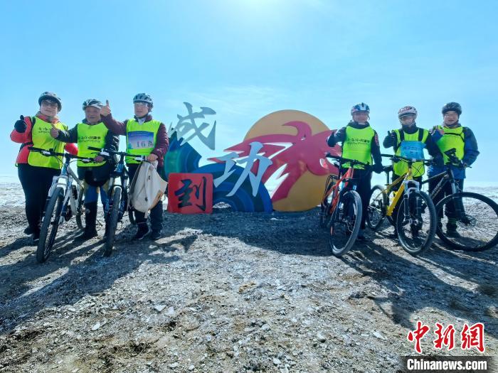 圖為騎行愛好者在青海湖邊留影。中新社記者 李雋 攝