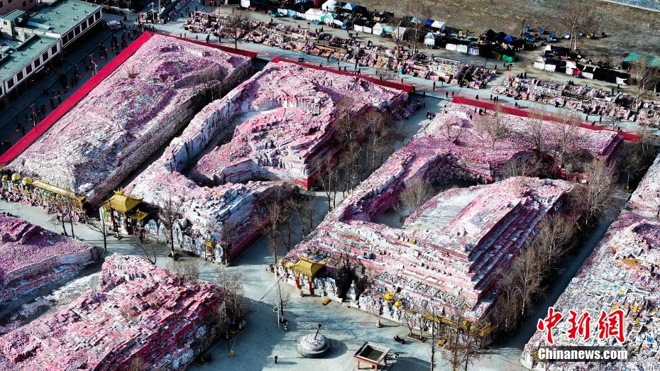 4月12日,在青海省玉樹藏族自治州玉樹市,航拍世界最大瑪尼石堆。據(jù)了解,玉樹嘉那瑪尼石的形成和發(fā)展已有300多年的歷史,嘉那瑪尼石經(jīng)城內(nèi)石刻數(shù)量多達(dá)25億塊,2002年被載入吉尼斯世界紀(jì)錄,成為世界最大的瑪尼堆。中新社記者 薛蒂 攝
