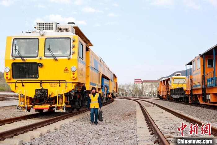 4月27日,中國鐵路青藏集團有限公司西寧工務機械段養(yǎng)路機械駕駛員俞慶檢查完大型養(yǎng)路機械車后返回宿營車。中新社記者 薛蒂 攝