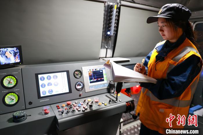 4月27日,中國鐵路青藏集團有限公司西寧工務機械段養(yǎng)路機械駕駛員俞慶作業(yè)前填寫工作日志。中新社記者 薛蒂 攝