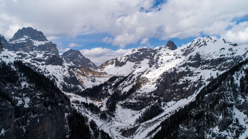 這是香格里拉市巴拉格宗景區(qū)的雪后風(fēng)光(2019年3月16日無人機(jī)拍攝)。新華社記者 胡超 攝