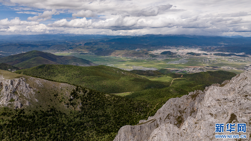 石卡雪山與遠(yuǎn)處的納帕海、香格里拉市區(qū)(6月10日攝)。新華網(wǎng) 劉東 攝