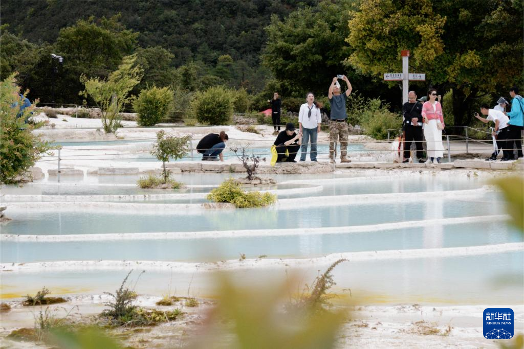 6月26日,游客在白水臺(tái)游玩。新華社記者 浦超 攝