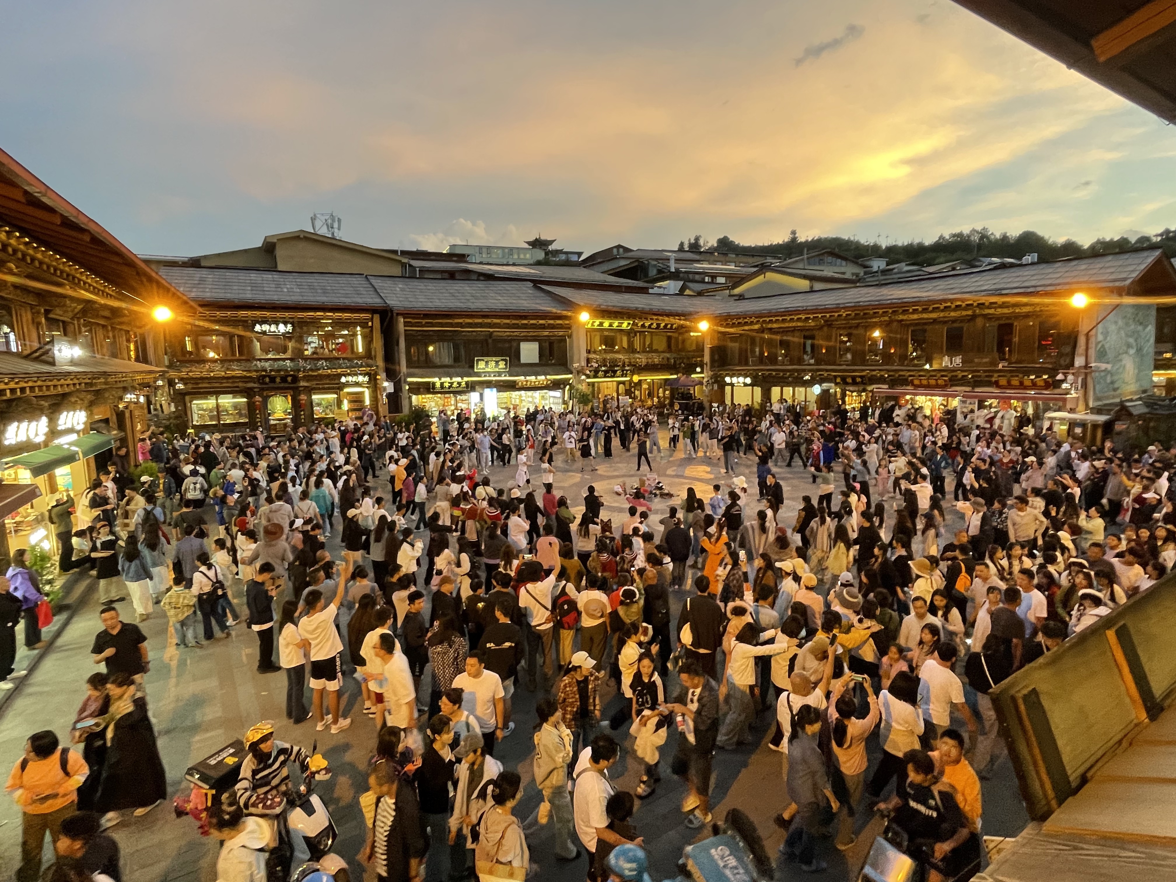傍晚時(shí)分,獨(dú)克宗古城月光廣場(chǎng)準(zhǔn)時(shí)響起歡快的音樂,一場(chǎng)盛大的廣場(chǎng)舞正在上演。藏族、漢族、回族等不同民族同唱一首歌,同跳一支舞。不同年齡段的游客與當(dāng)?shù)鼐用褚黄鹗掷郑ぶ?jié)拍起舞?!昂痛蠹乙黄鹛杼貏e開心,感覺一下子就融入了這里!”來自廣東的大學(xué)生小李興奮地說,“這種民族團(tuán)結(jié)、其樂融融的氛圍,在其他地方很難體驗(yàn)到?!?/p>