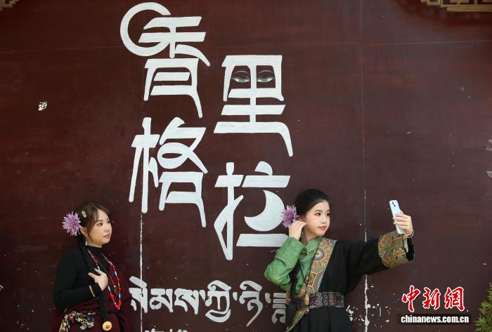 8月15日,兩名游客身著藏裝打卡獨(dú)克宗古城。中新社記者 黃興鴻 攝