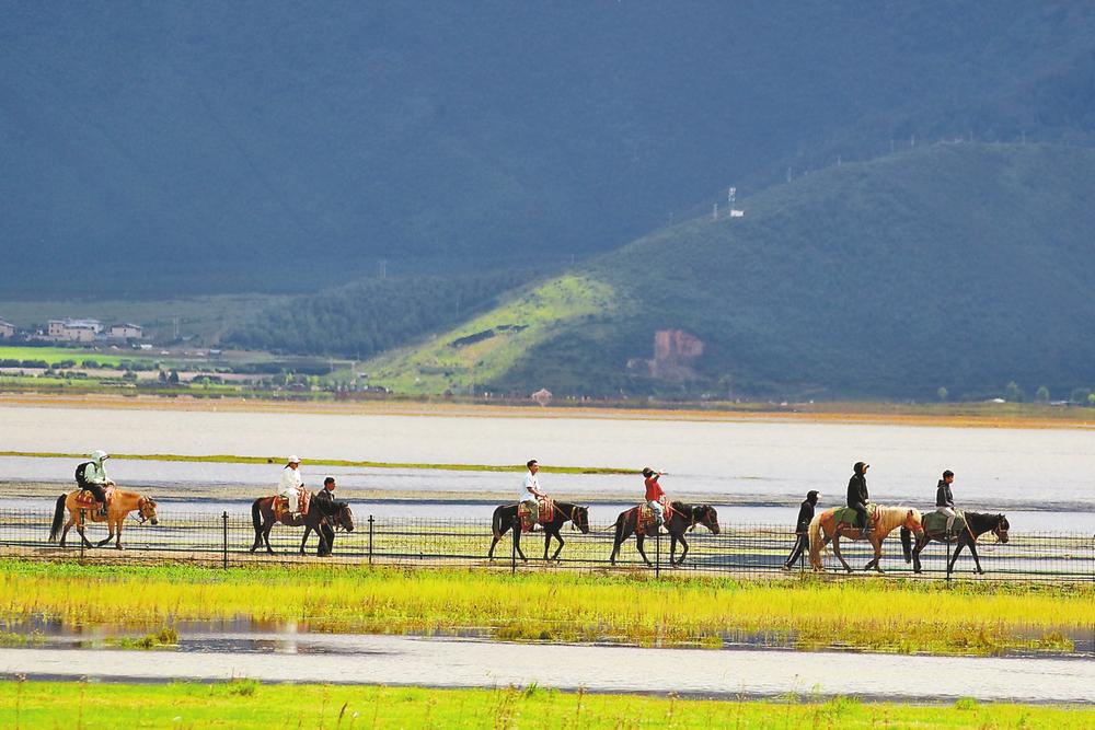游客在納帕海景區(qū)騎馬游玩。 黃興能 攝