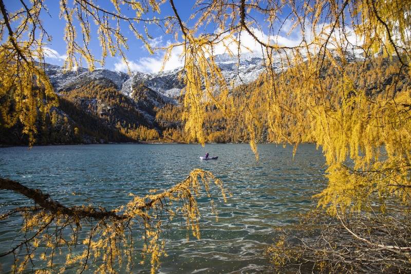近期,海拔4000多米的四川省甘孜藏族自治州道孚縣甲玉拉措景區(qū)迎來(lái)一年中最美的季節(jié)。澄澈如鏡的湖面倒映著金黃的落葉杉林,遠(yuǎn)處雪山皚皚,美麗的高原秘境畫(huà)卷吸引著八方游客。